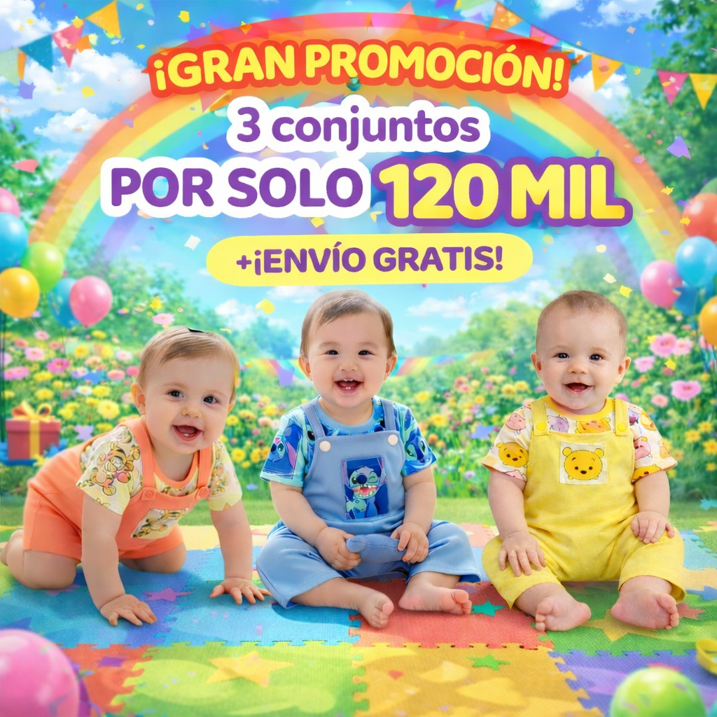 ¡Arma tu trío de conjuntos favoritos y ahorra! 👶🎉 Cada conjunto multiusos...