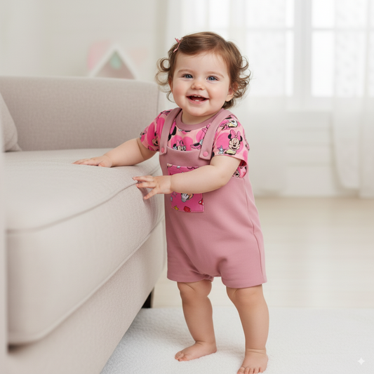 Conjunto Encantador de Overol y Camiseta Minnie Mouse para Bebé Niña | ¡Estilo Mágico y Comodidad!