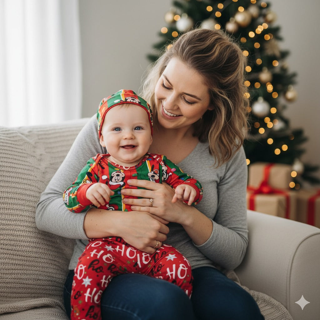 Confeccionado en algodón suave y transpirable, brinda el máximo confort a la delicada piel del bebé. Su diseño alegre con motivos navideños y personajes clásicos encanta a mamás y papás por igual.