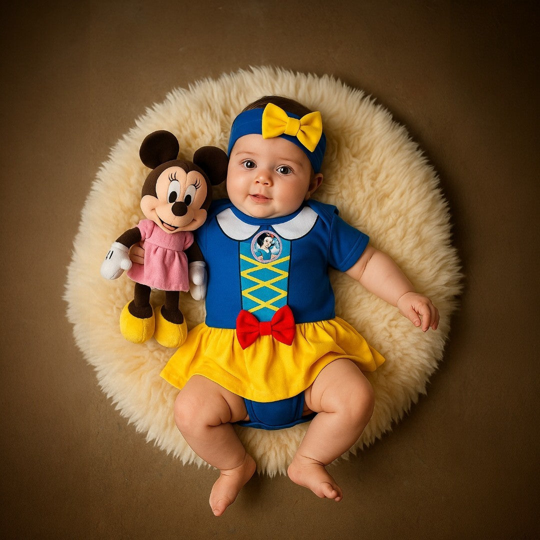 Haz que tu pequeña luzca como una verdadera princesa con este hermoso body inspirado en Blancanieves. Su diseño encantador combina los colores icónicos del personaje, mientras que su tela suave y fresca garantiza la mayor comodidad para tu bebé. Perfecto para usar en cualquier ocasión, ya sea en casa, en una sesión de fotos o para un look temático adorable.