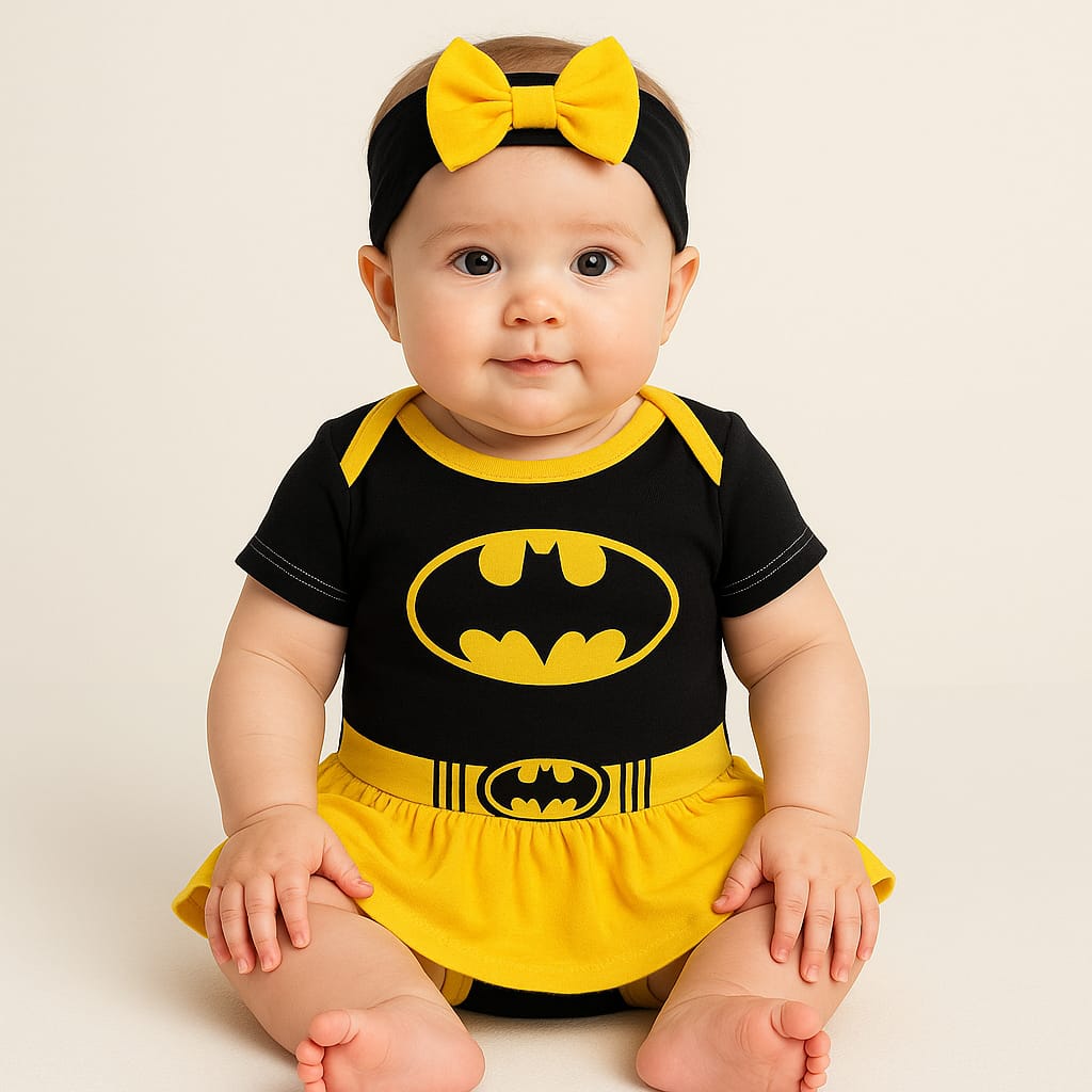 Este adorable body inspirado en Batichica es perfecto para las bebés que están listas para salvar el día con estilo y comodidad. Su diseño en tonos oscuros con detalles llamativos hará que tu pequeña luzca increíble en cualquier ocasión.