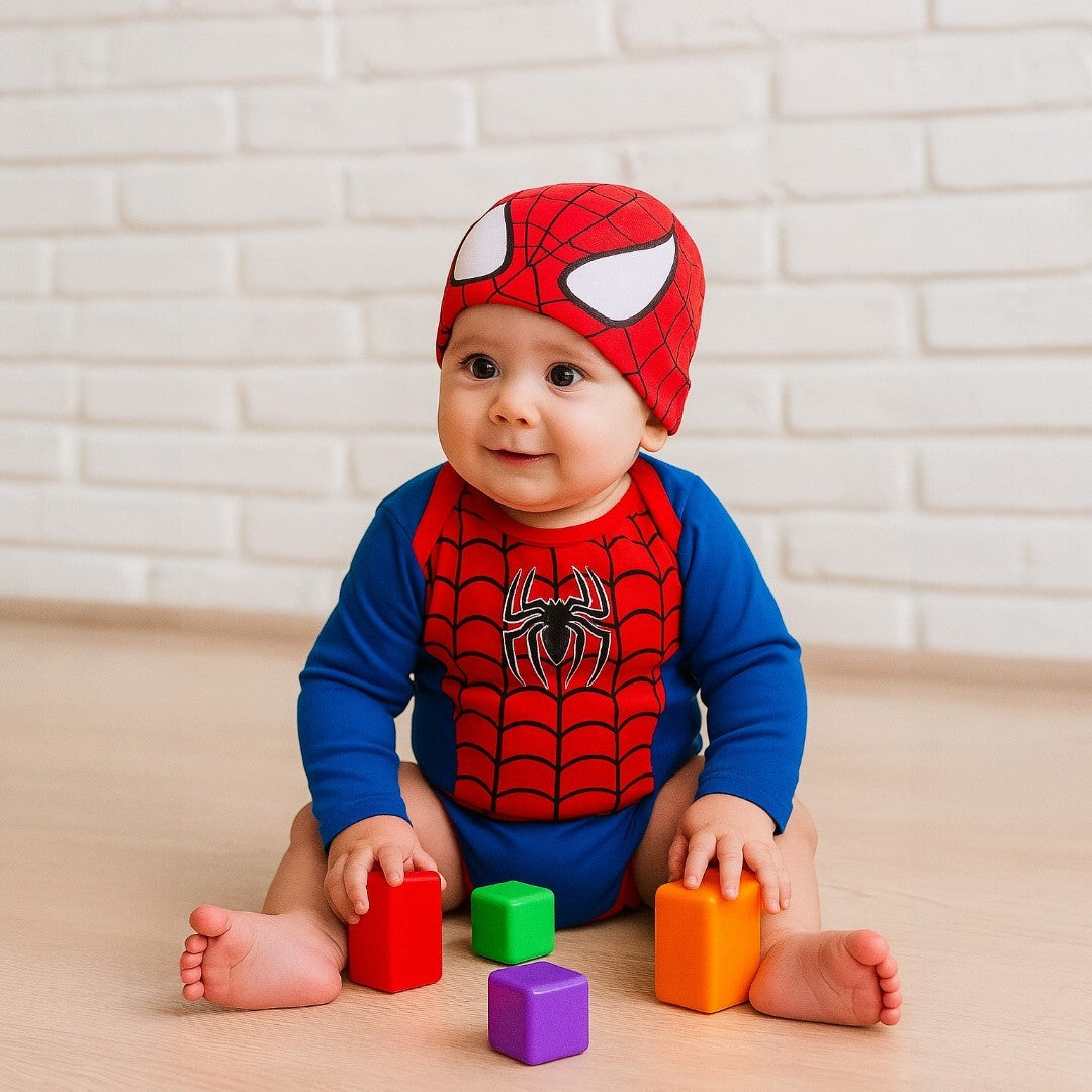 Este asombroso body inspirado en Spiderman es perfecto para los bebés que ya traen el sentido arácnido incorporado. Con su diseño en los clásicos colores rojo y azul, tu pequeño lucirá como todo un mini superhéroe listo para la aventura.