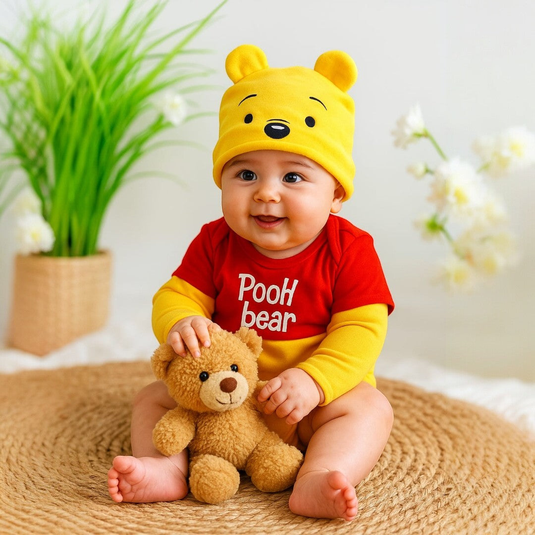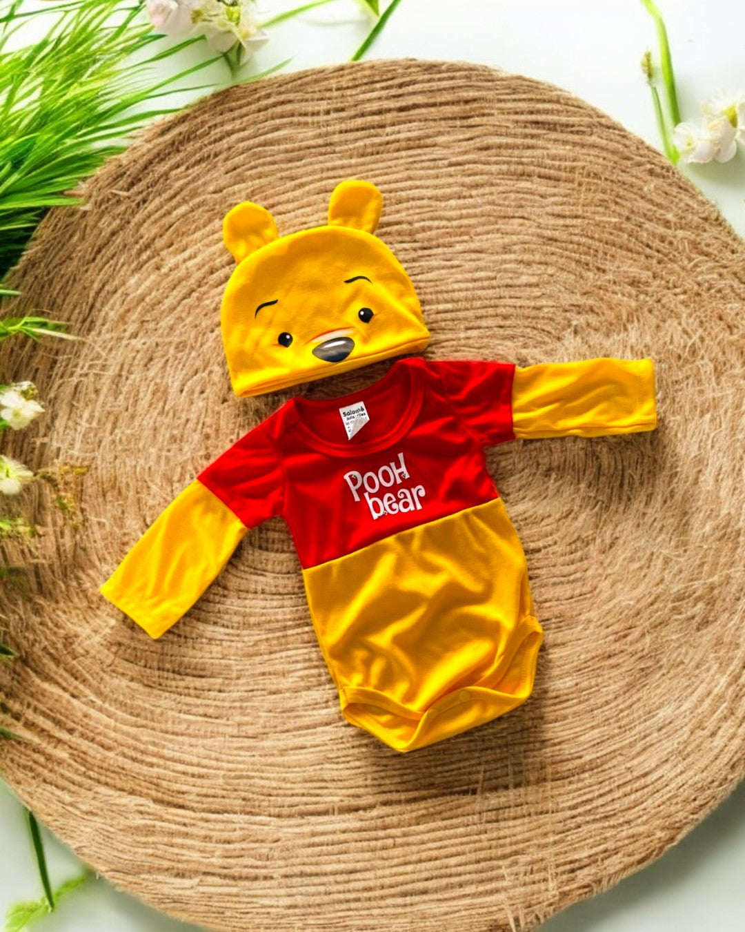 Tu bebé se verá adorable con este body inspirado en Winnie Pooh, el osito más tierno y amoroso del Bosque de los Cien Acres. Diseñado para brindar máxima comodidad y suavidad, este body es perfecto para acompañar a tu pequeño en cada aventura, con un toque de nostalgia y dulzura.