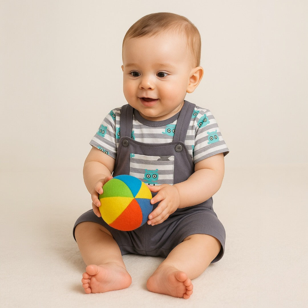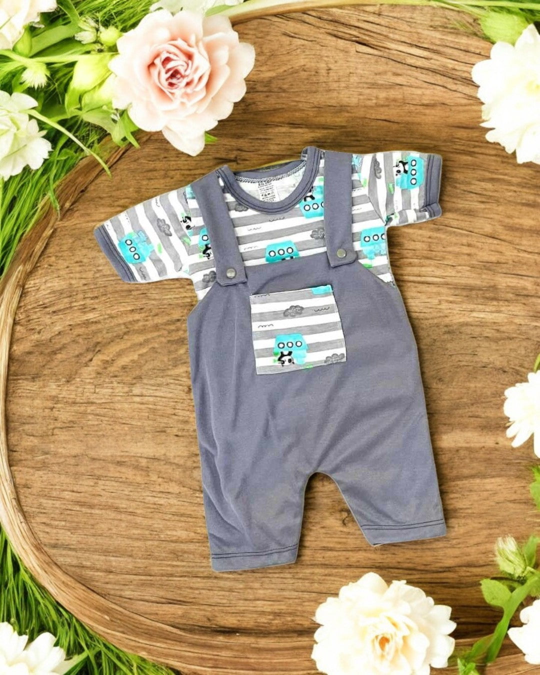 Este conjunto es la combinación perfecta de comodidad y ternura. Su diseño en tonos grises con estampado de autos le da un toque moderno y divertido.