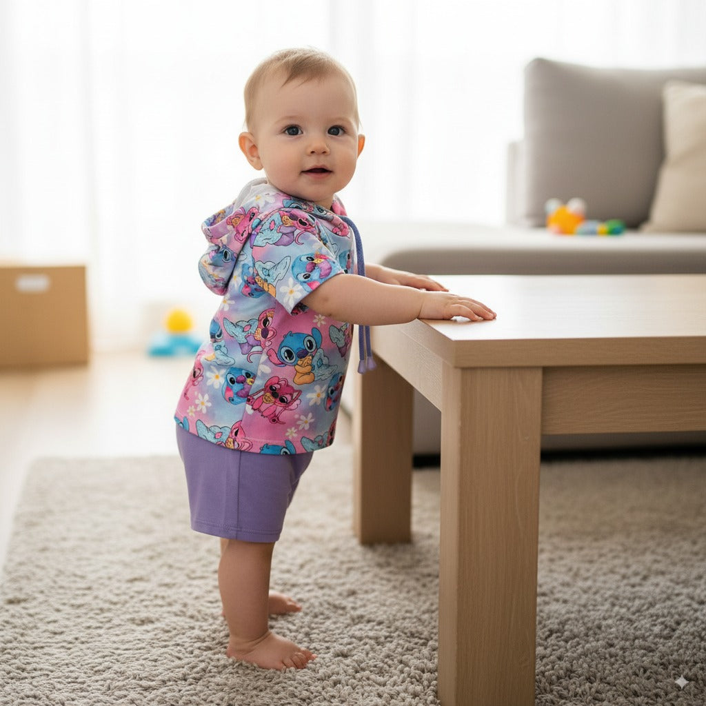 ¡Dale a tu peque comodidad y frescura con este hermoso conjunto de capota y short! 🌞💖 Confeccionado en tela suave y transpirable, ideal para los días soleados. Su diseño colorido con personajes encantadores hará que tu bebé luzca adorable en todo momento.